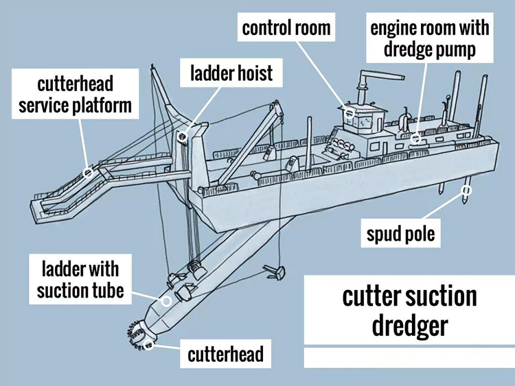 Ukuthelekisa kunye ne-Trailing Suction Hopper Dredgers: I-Cutter suction dredgers idinga indawo esisigxina kunye nokuthutha i-sludge kwiindawo ezizinzileyo ngokusebenzisa imibhobho yokukhupha; trailing suction hopper dredgers are self-propelled, suck sludge with trailing heads, store it in their own mud hoppers, then sail to spoil areas for unloading. Ziyakwazi ukuguquguquka okuphezulu kwaye zifanelekile kwiindawo ezivulekileyo zolwandle kunye nokugcinwa kwamanzi.